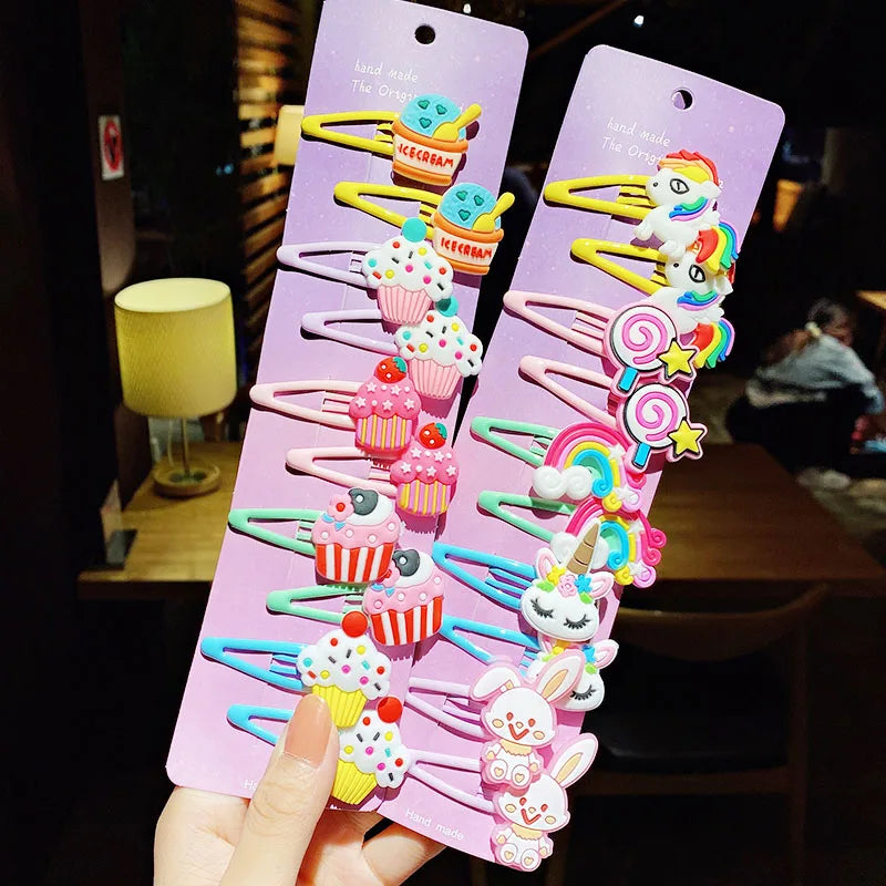 10PCS/Set New Girls Cute Cartoon Ice Cream Unicorn Hairpins Kids Lovely Hair Clips Barrettes Headband Fashion Hair Accessories