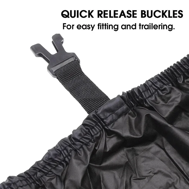 Premium 190T oxford fabric ensures its good durability.Double stitching(Sewing), which makes the cover much stronger.NON-scratch elastic hems on the front and back hold the cover in place without scratching your boat.