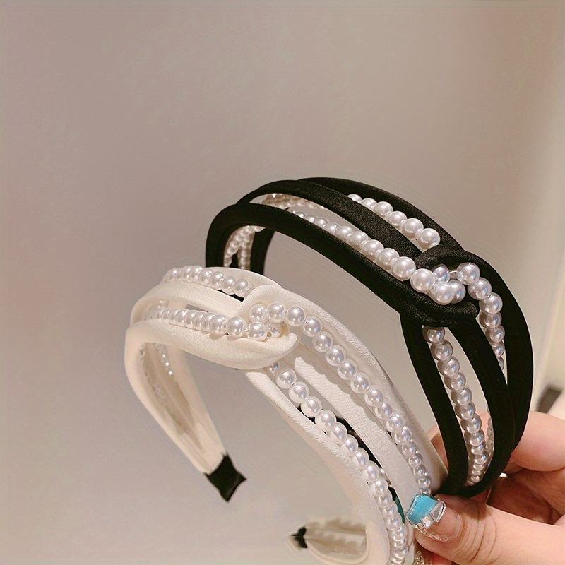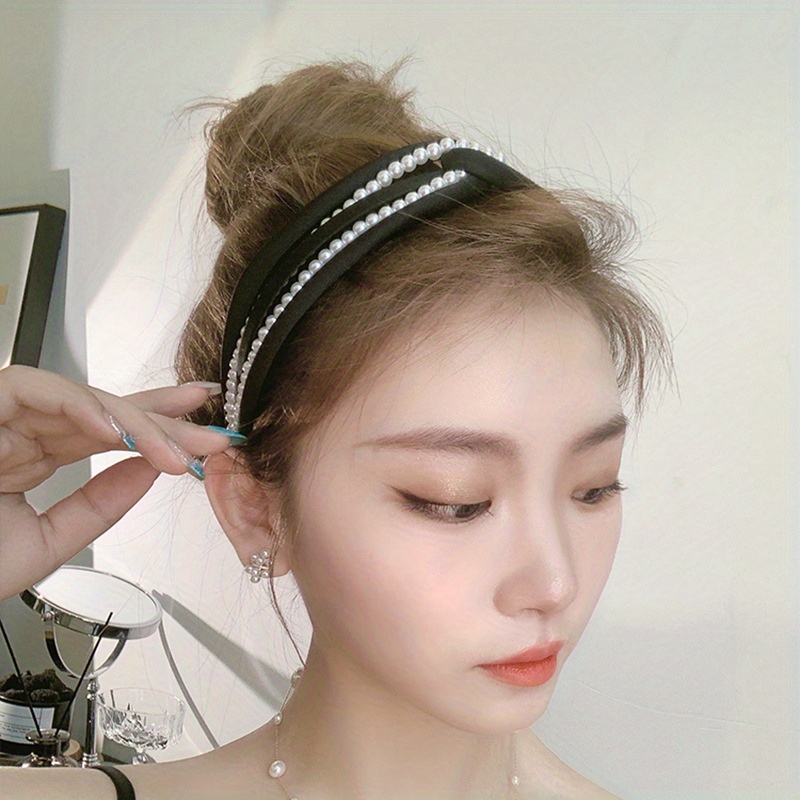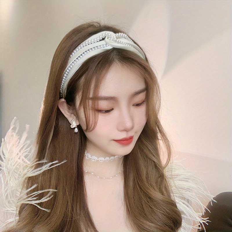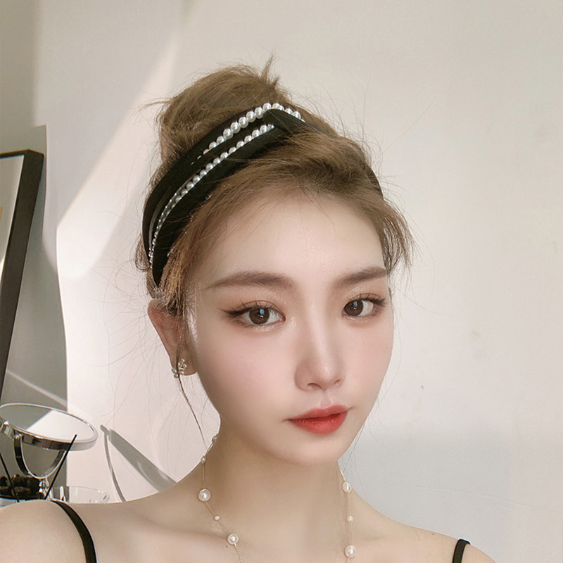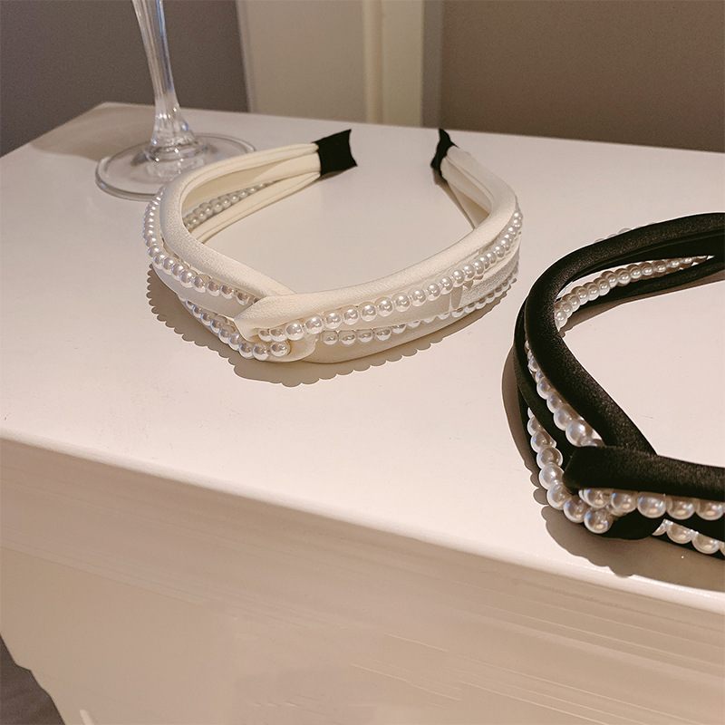 1PC European and American personality pearl headband heavy head grottoes Fashion personality pearl pleated knot pressure headband wide edge clip headband female