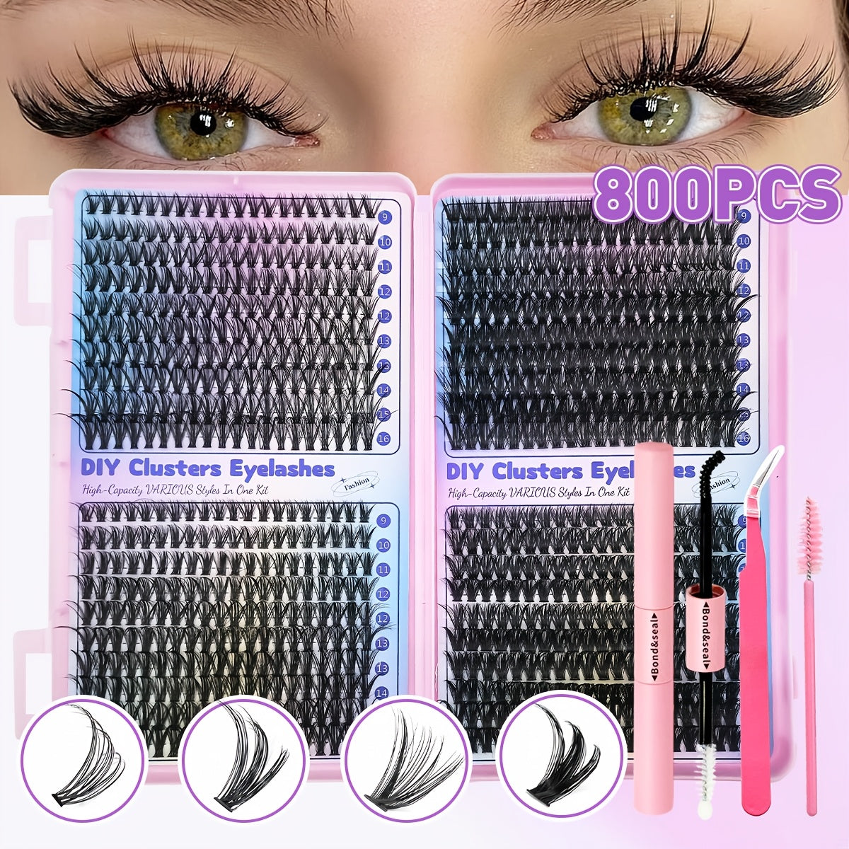 200/800pcs DIY Eyelash Extension Kit Individual Lashes Cluster, 9-16mm Mix 30D 40D 50D 60D with Lash Bond and Tweezers for Beginners, Exquisite gift set Beautiful gift, New Year gift