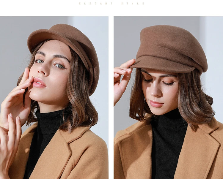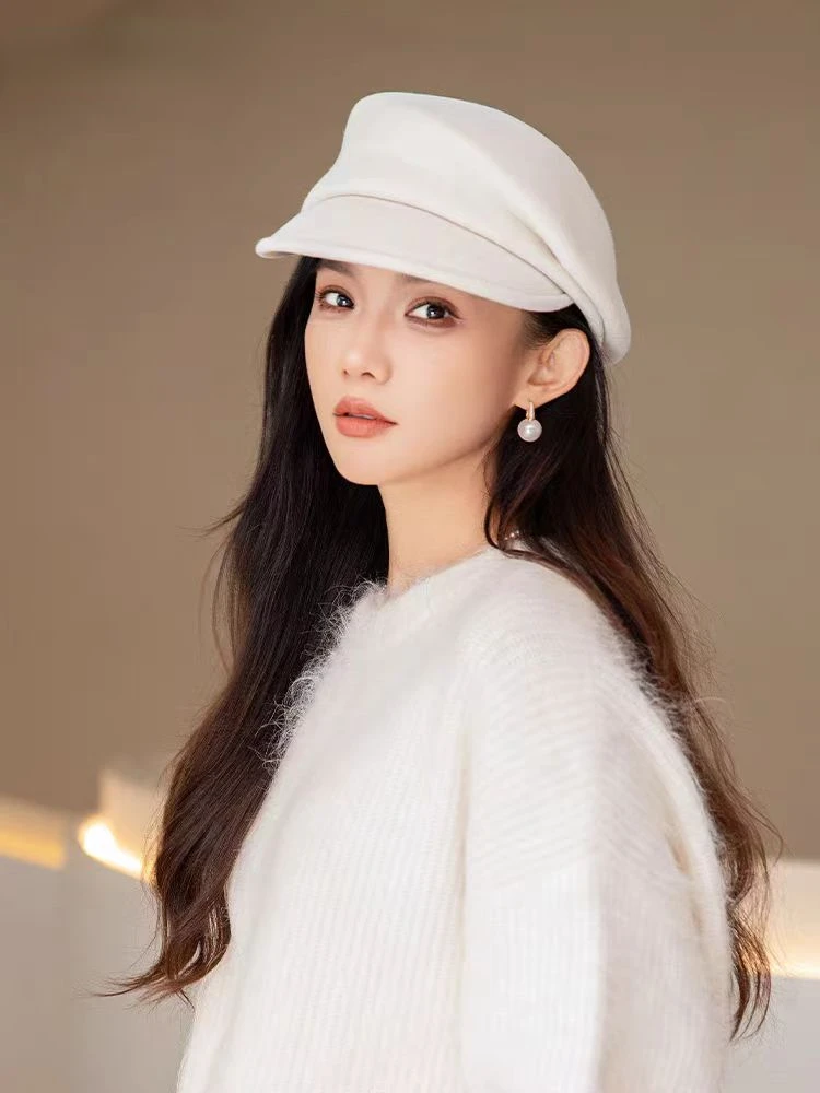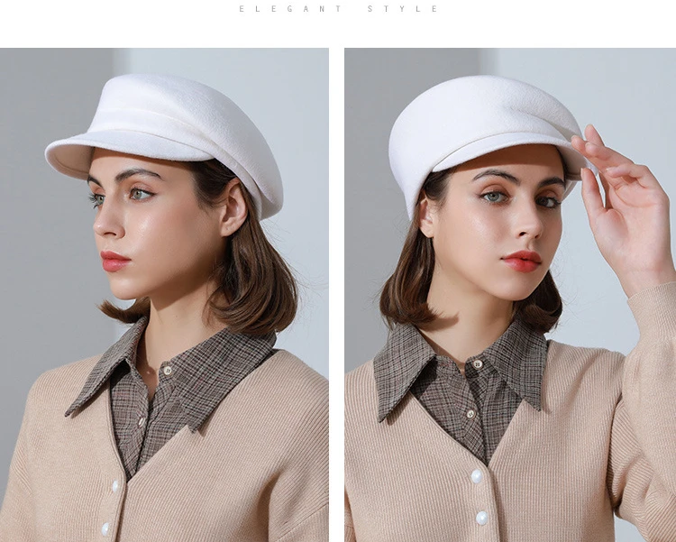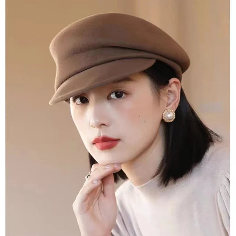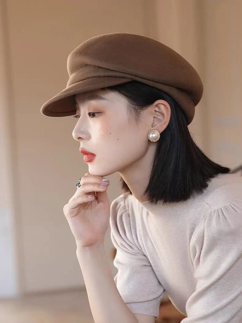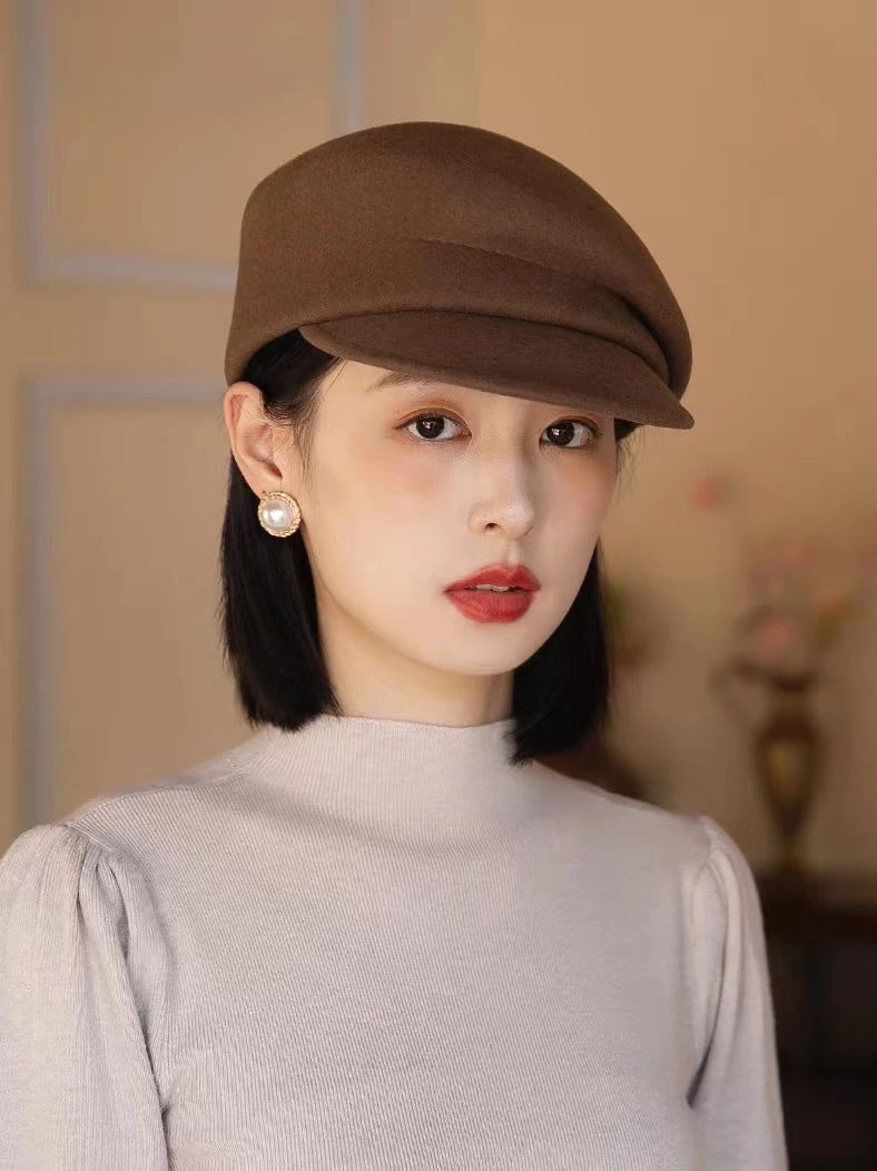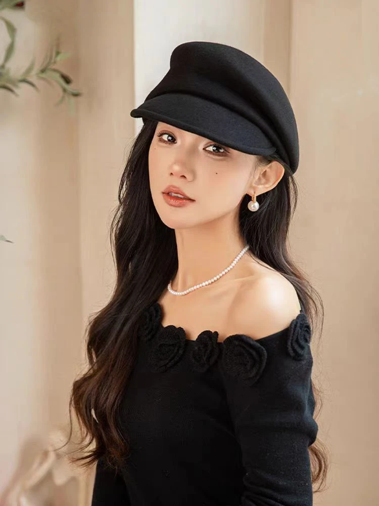 2024 Party 100% Pure Wool Custom Autumn and Winter Beret Designer Wedding Ladies New Peaked Cap Banquet Cloche Top Hat Wholesale