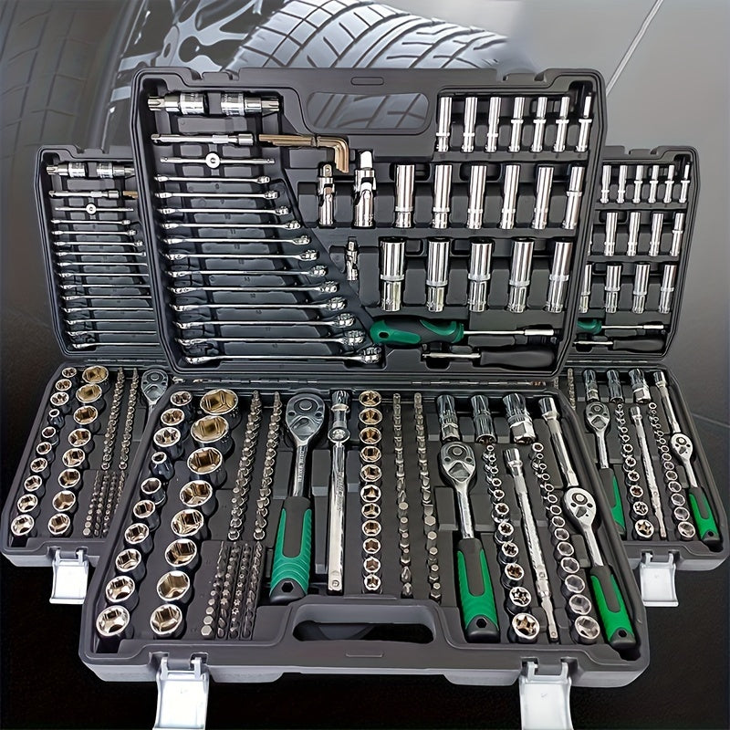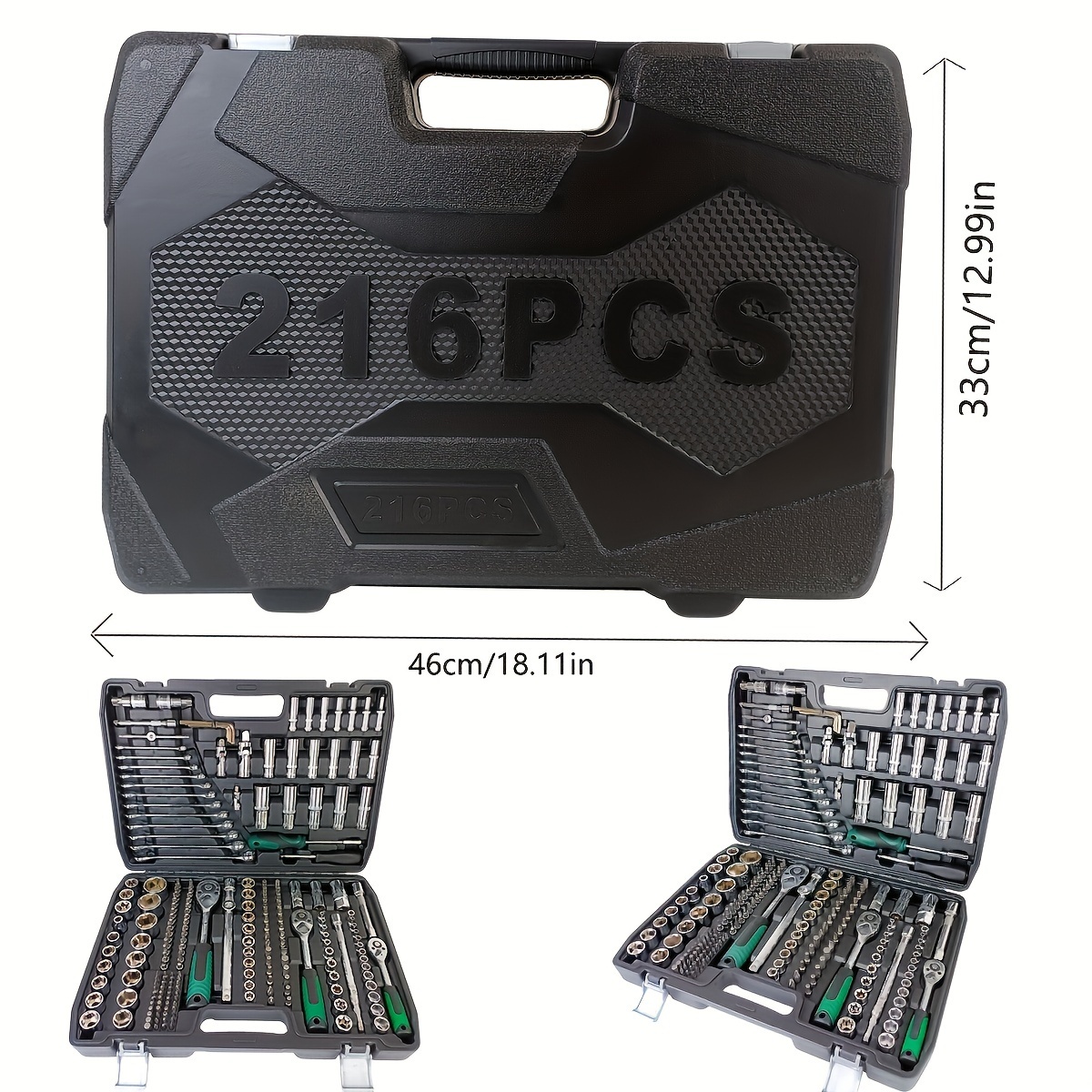 216/46pcs High Quality Multifunctional Heat Treated Chrome Vanadium Steel Ultimate Car Mechanic Tool Set, Premium Torque Wrench Set, Ultra Portable, Integrated Solution for Car, Bike And Motorcycle Maintenance