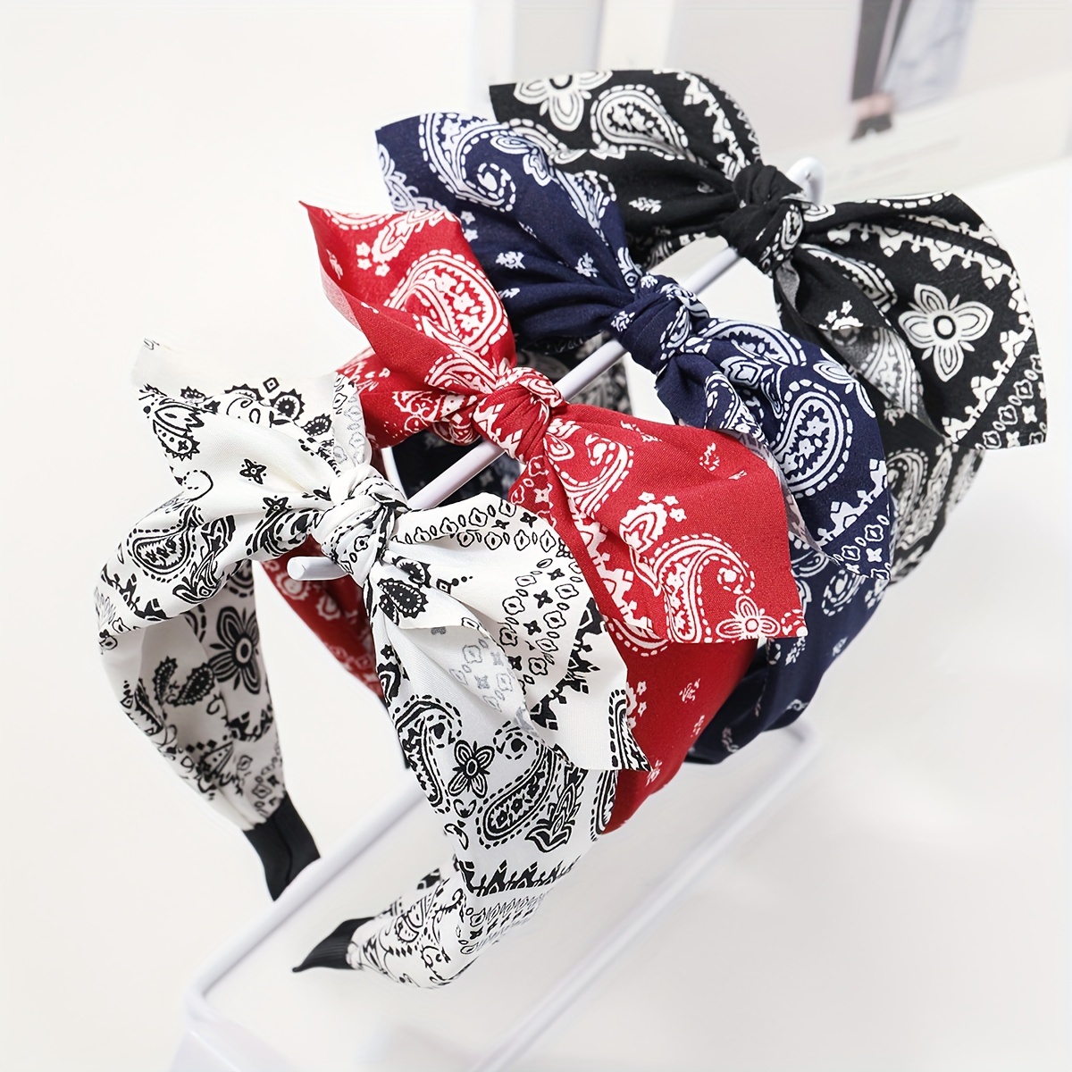 4PCS For A Set, Women's Multi-color Cashew Flower Fabric Bow Wide Edge Hair Accessories Headband, Fashionable Bosimi Style, Suitable For Daily Use