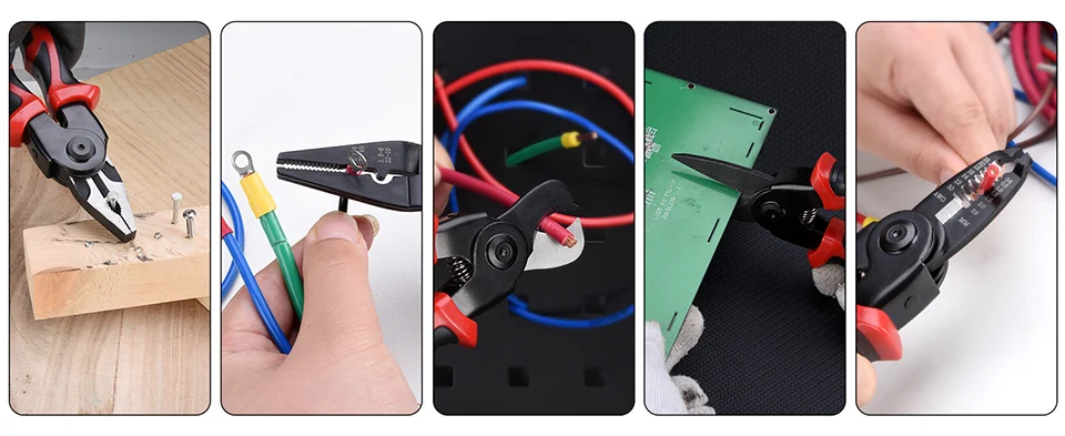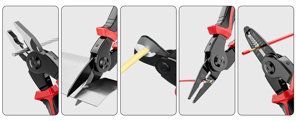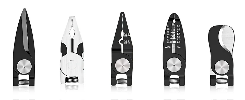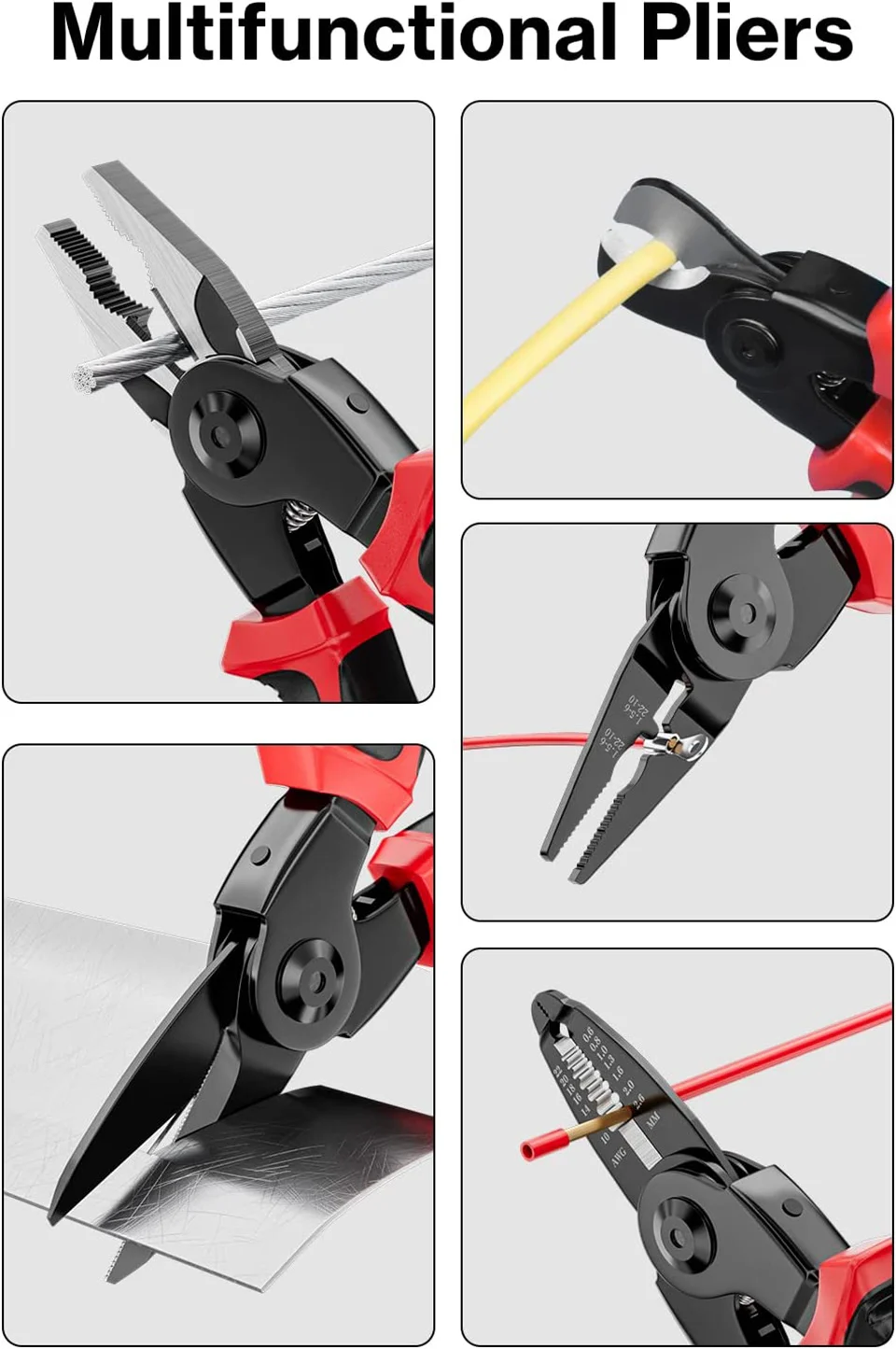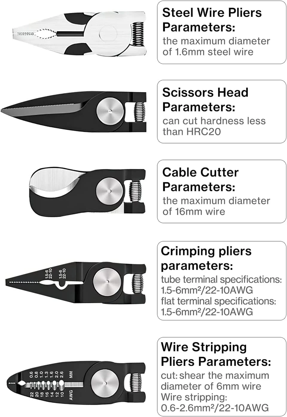 1. Multifunctional Pliers Tool Set: This 5-in-1 interchangeable head pliers set combines wire strippers, crimping pliers, cable cutters, tin cutters and wire cutters, with many different functions to meet various repairs and repairs need