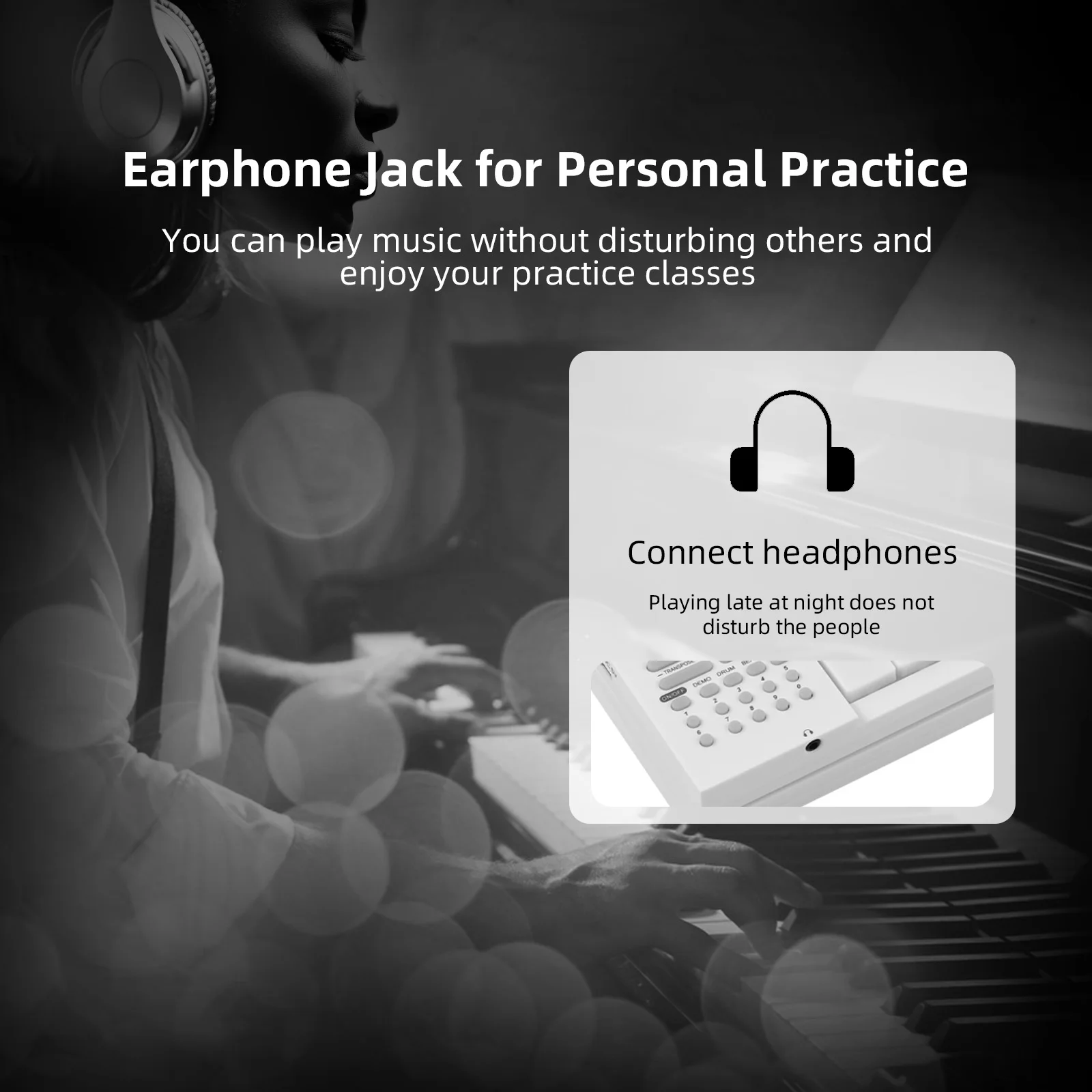 【Headphone Jack and USB Power Cable】: The piano is equipped with a headphone jack for private practice and a USB power cable for convenient charging. You can play music without disturbing others and enjoy your practice sessions.