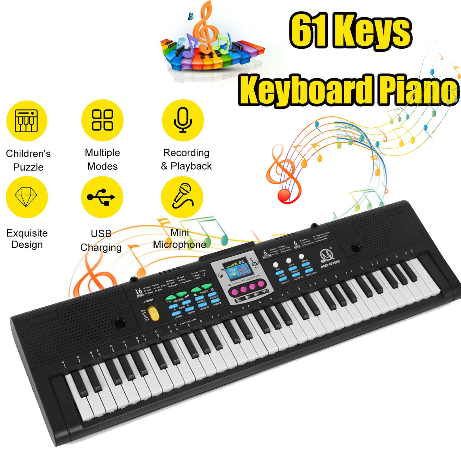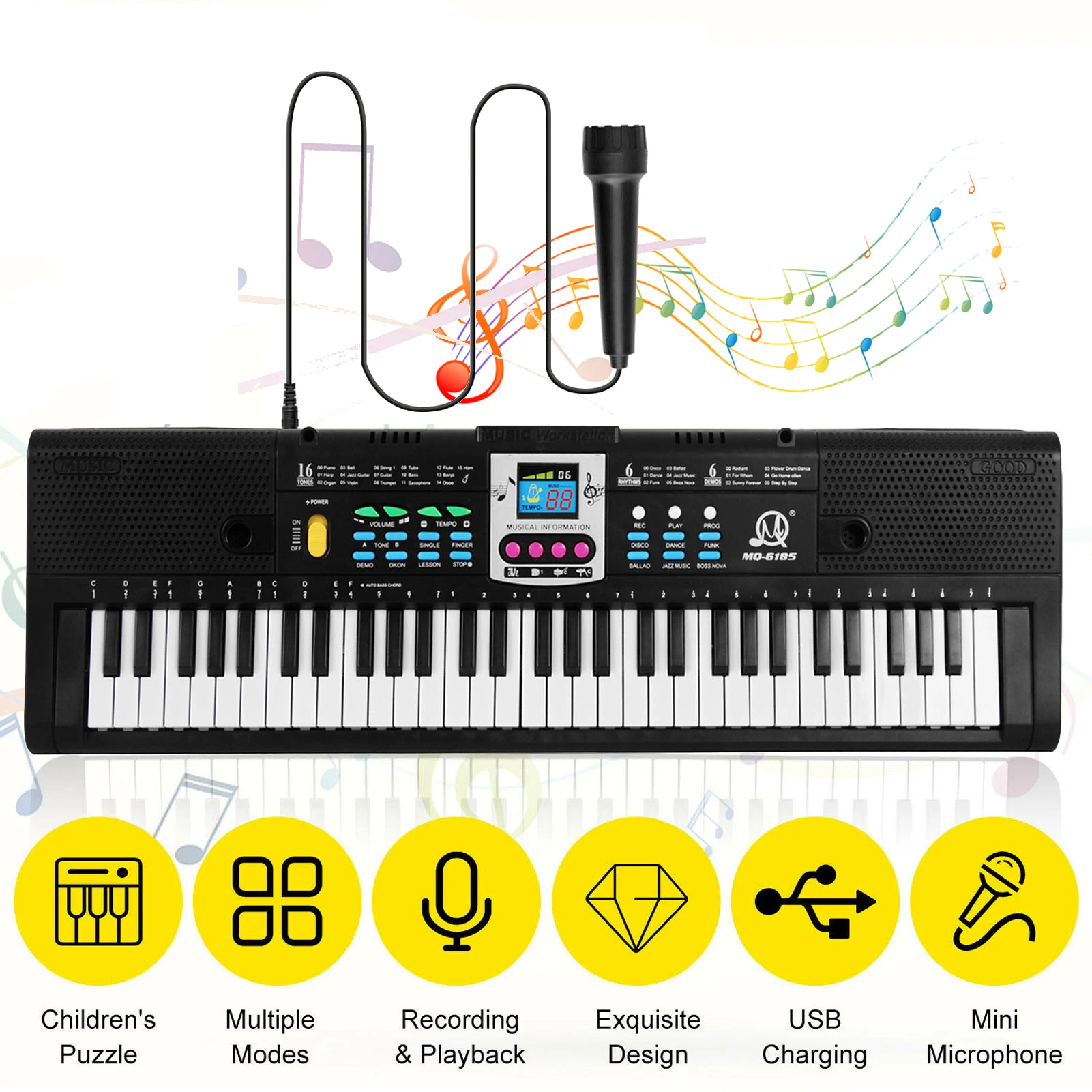 61 Keys Digital Electronic Keyboard Kids Multifunctional Electric Piano for Piano Student with Microphone Musical Instrument