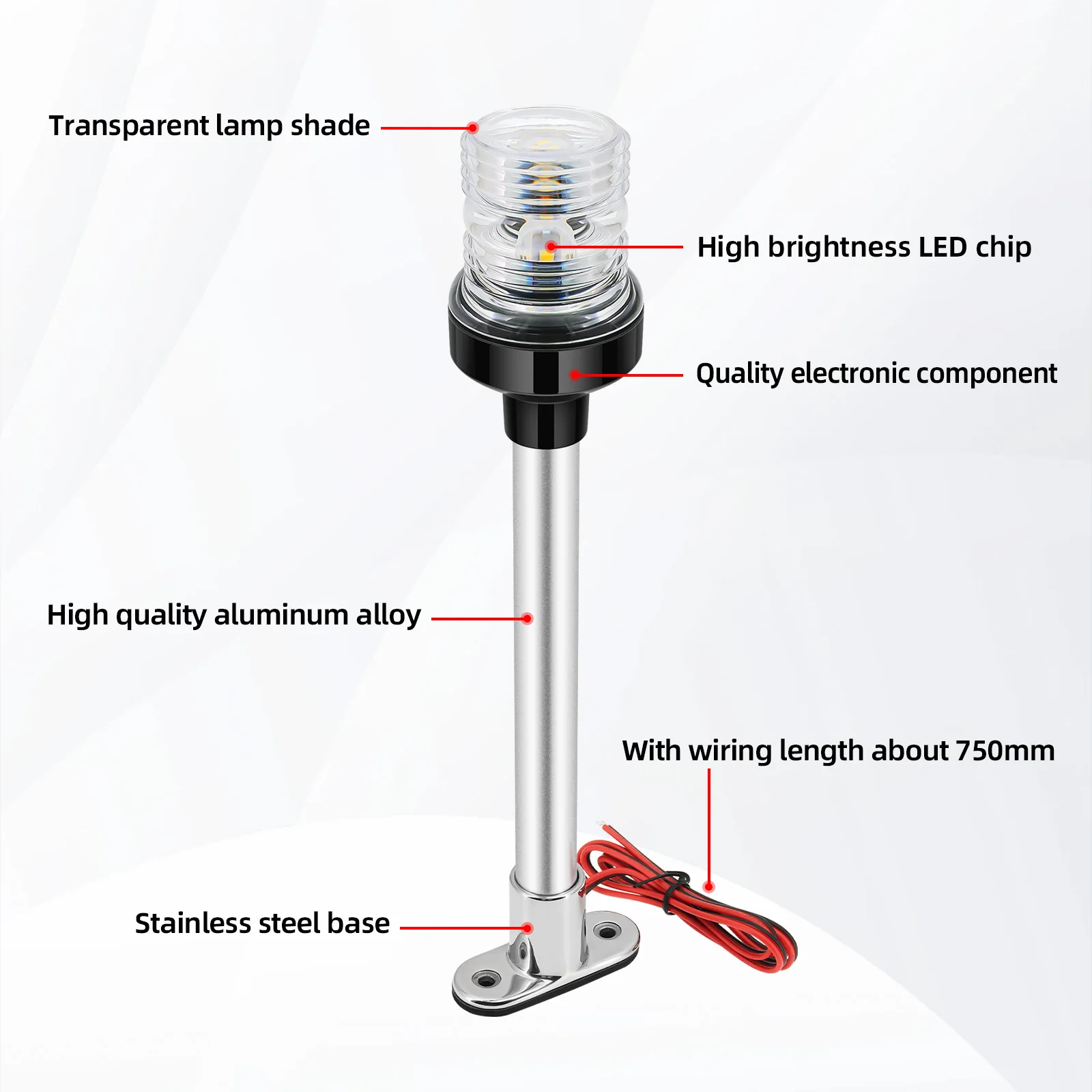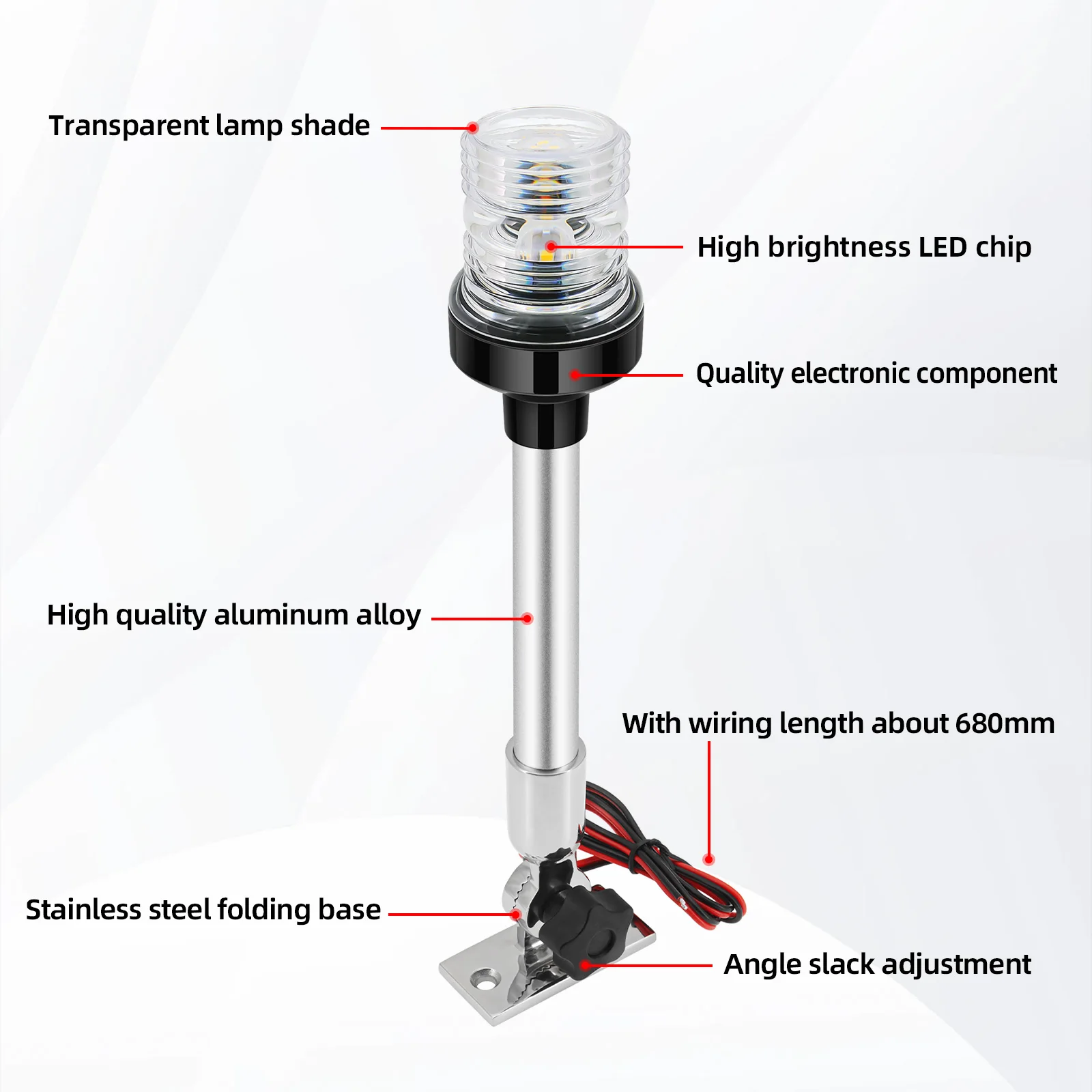 AD 12V 24V Sailing Signal Light Boat Navigation Light Fold Down 360 Degree LED for Yacht Marine Anchor Light Boat Accessories