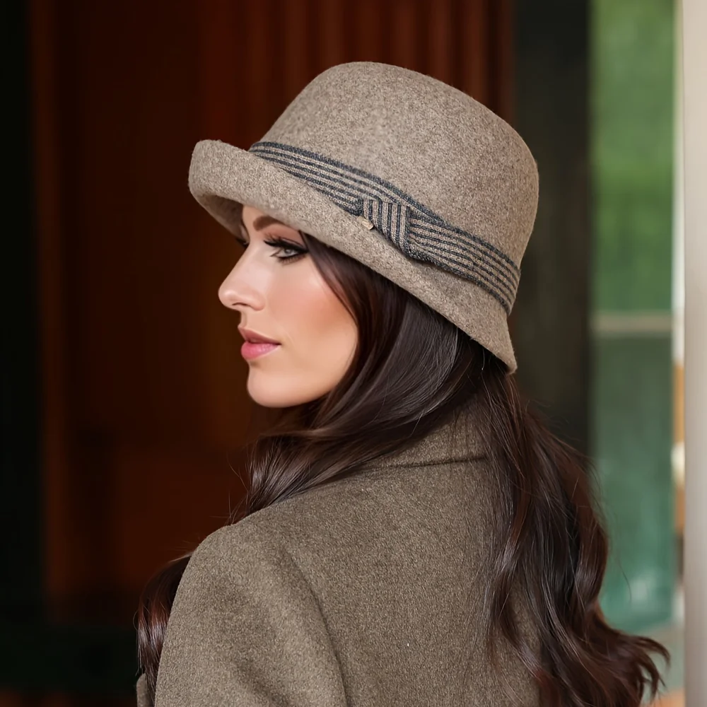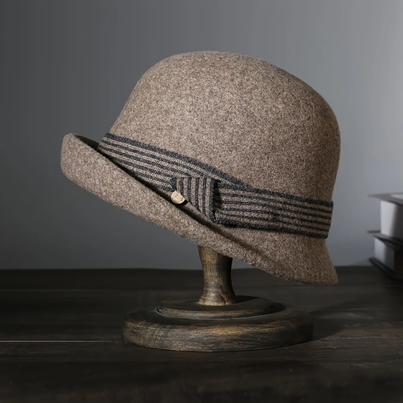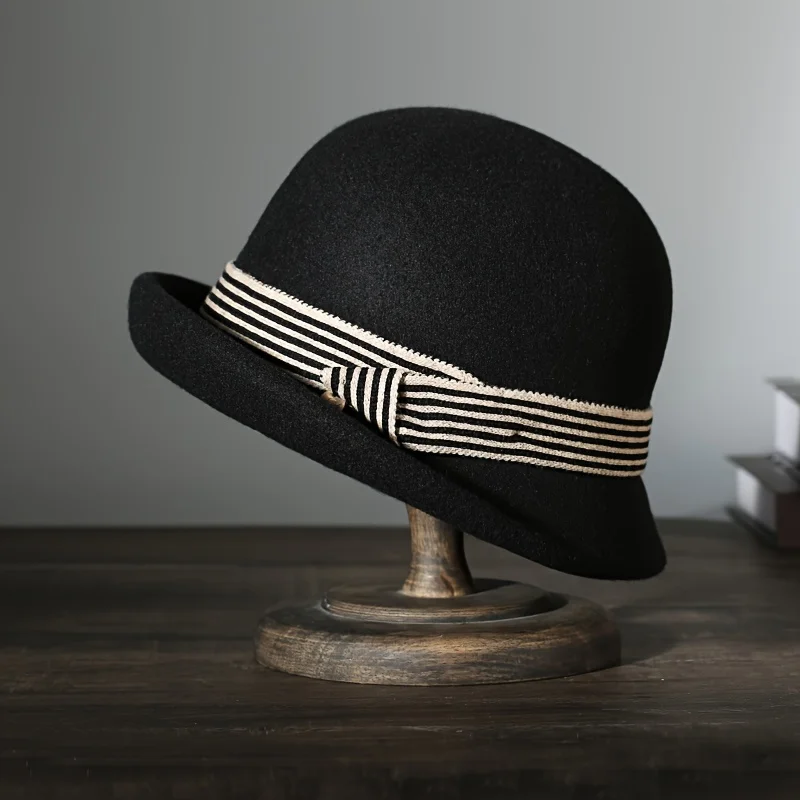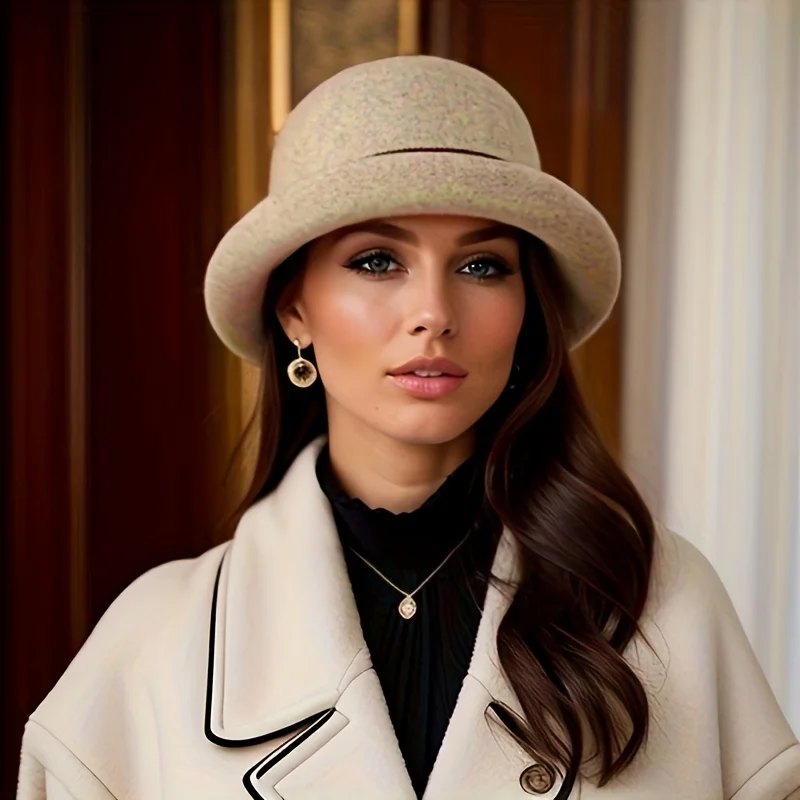 Autumn and winter hats, new Korean version felt hat, round top, fashionable curled edge small top hat, women's wool basin hat, d