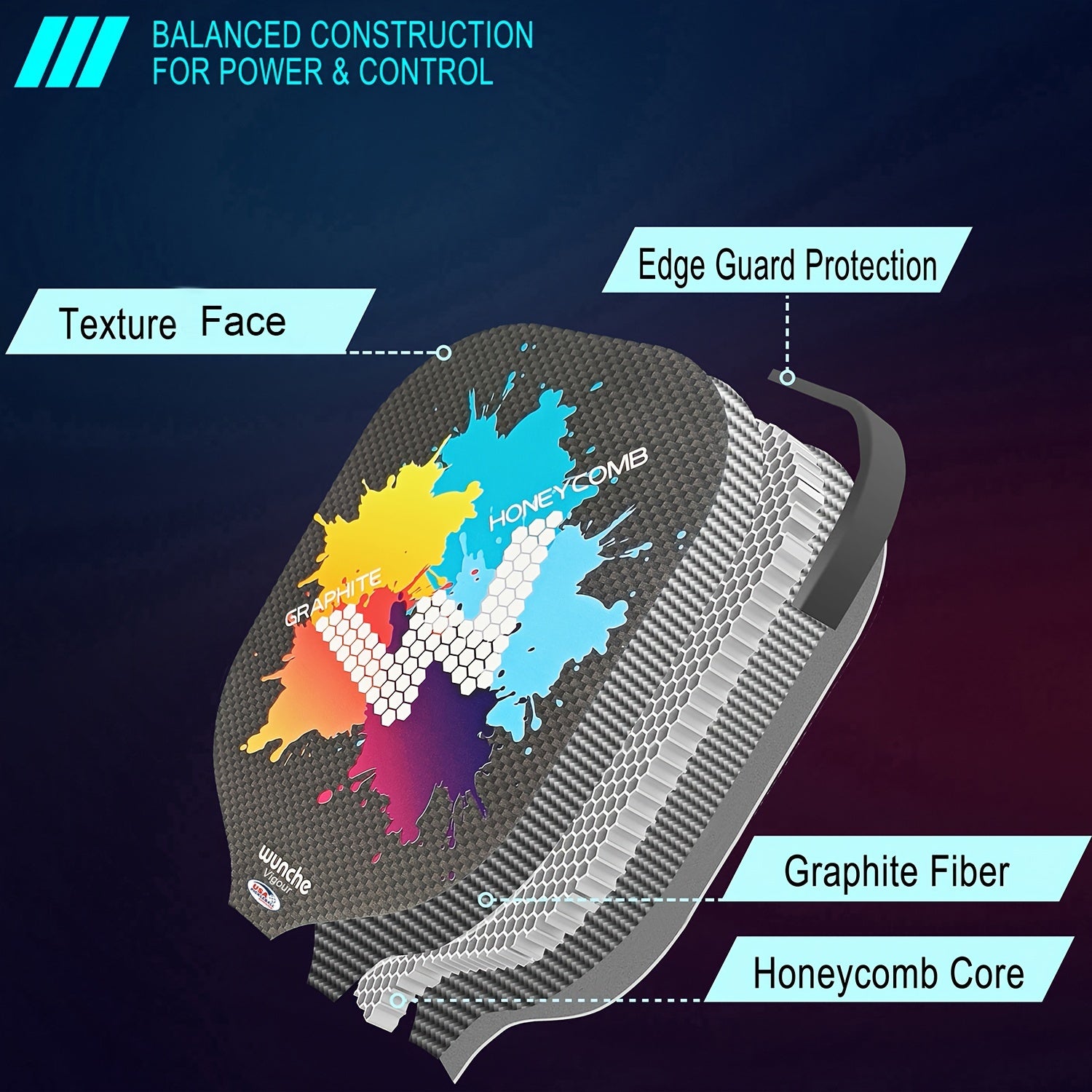 · High-quality Material: Made of graphite carbon fiber and honeycomb core, these paddles are durable and lightweight, providing you with the perfect balance of power and control.