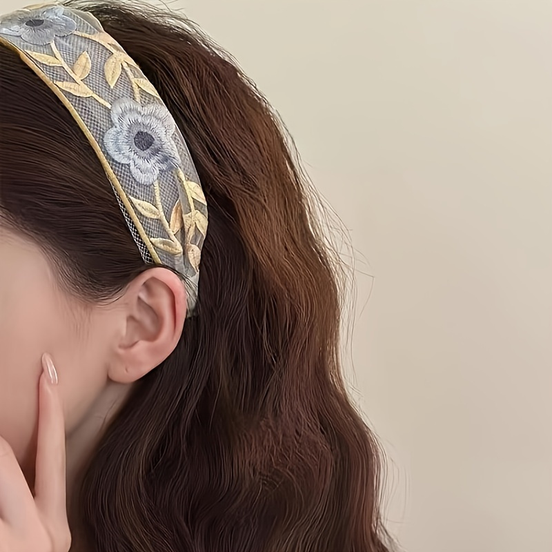 Elegant Boho Embroidered Floral Headband Set - Wide, Vintage-Inspired Hairbands for Women