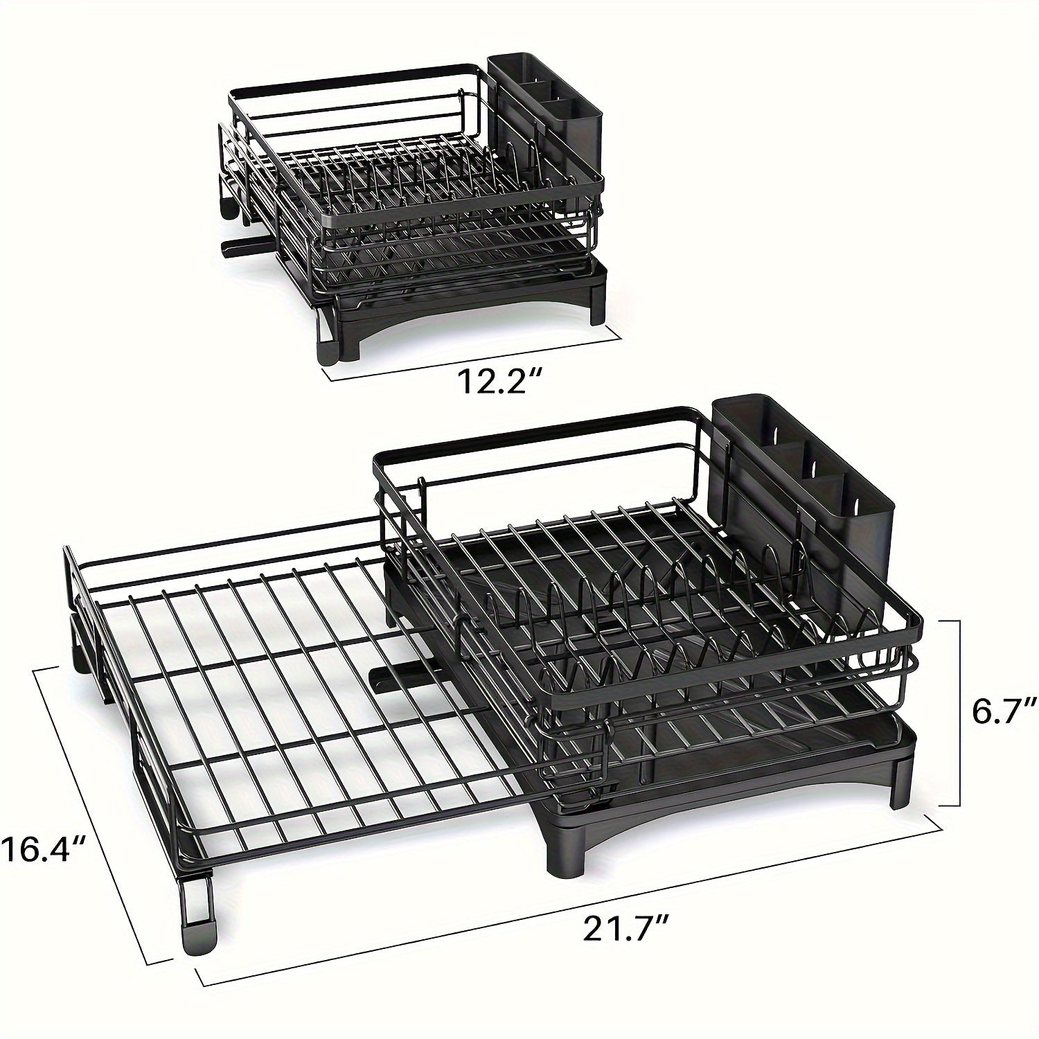 Expandable 2-in-1 Dish Drying Rack - Space-Saving, Rust-Resistant Metal Dish Drainer With Pan Slots, Utensil Holder, And Drainboard For Kitchen Counter And Sink Organization