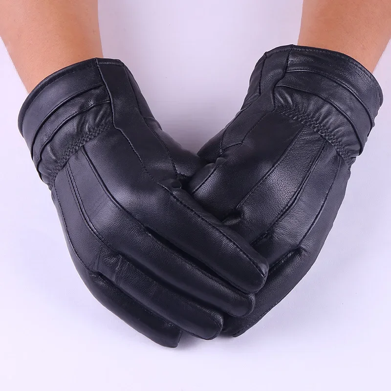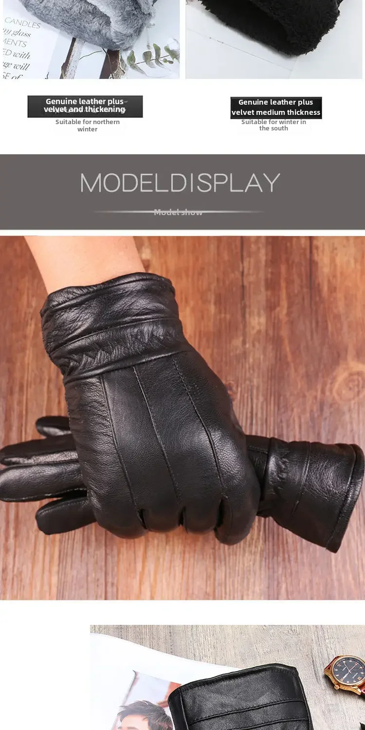 Genuine Leather Gloves For Men Women Fleece-lined Warm Thin Riding Motorcycle Autumn Winter Thickened Cotton Glove Wholesale