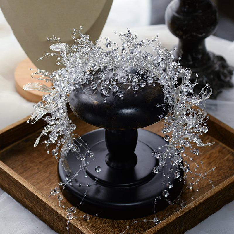 Luxurious Artificial Crystal Bead Hair Accessories, Liquid Flower Headpieces, Bridal Wedding Hair Ornaments, Handmade Hair Adornments.