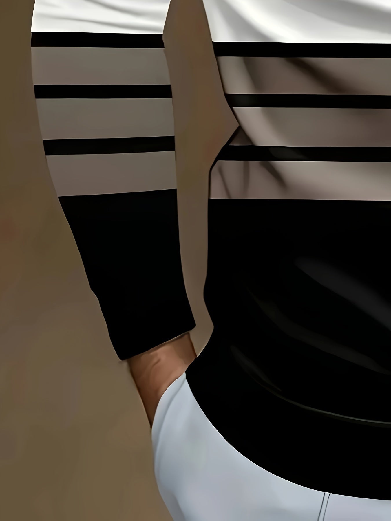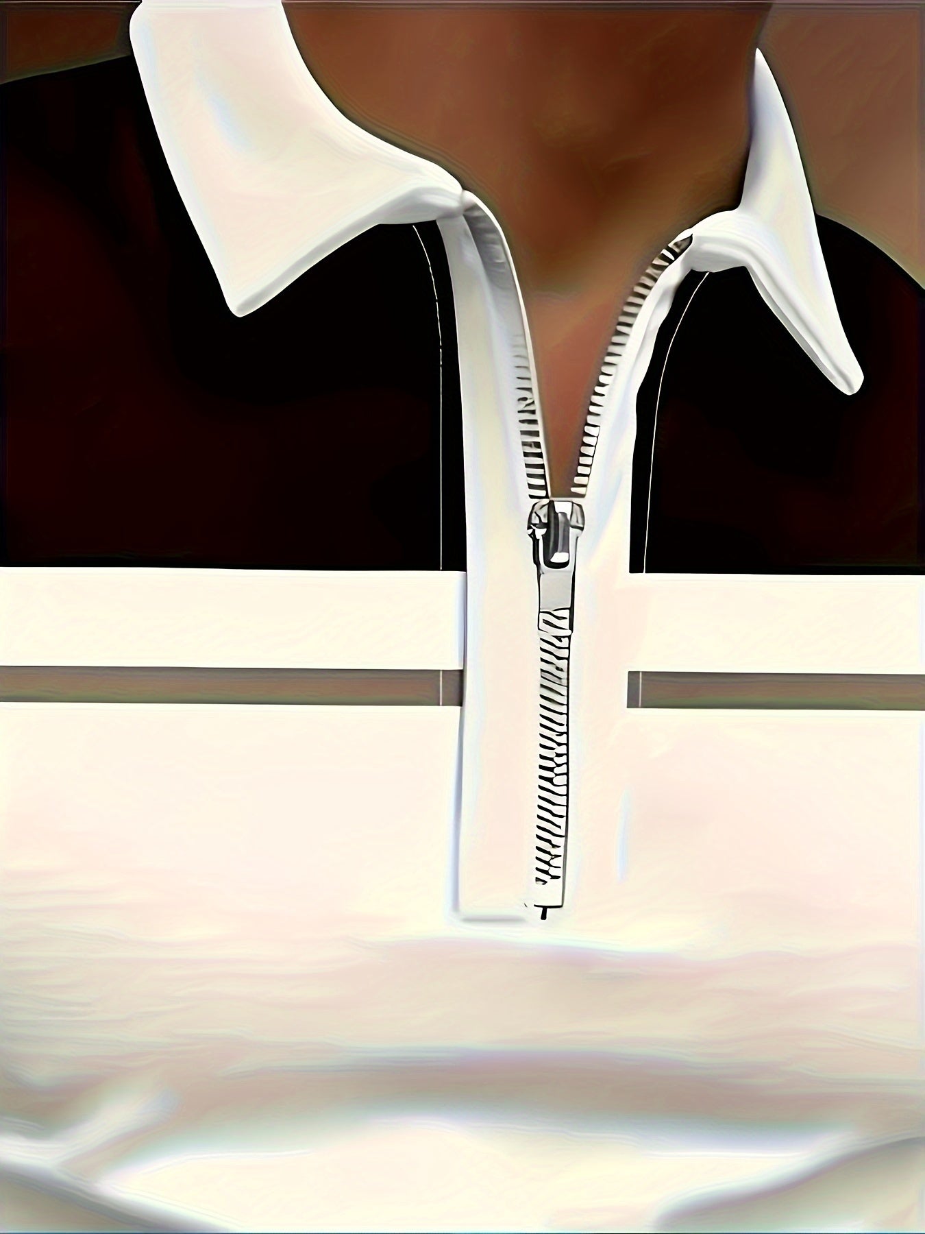 Men's Long Sleeved Zipper Collar Shirt Striped Fashion Spring And Autumn Polo Shirt Collar