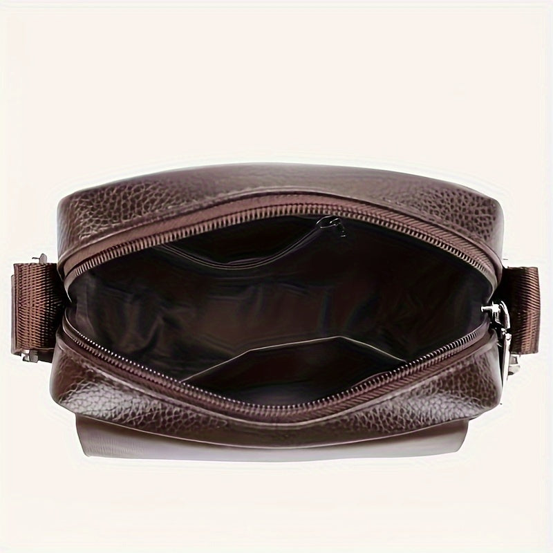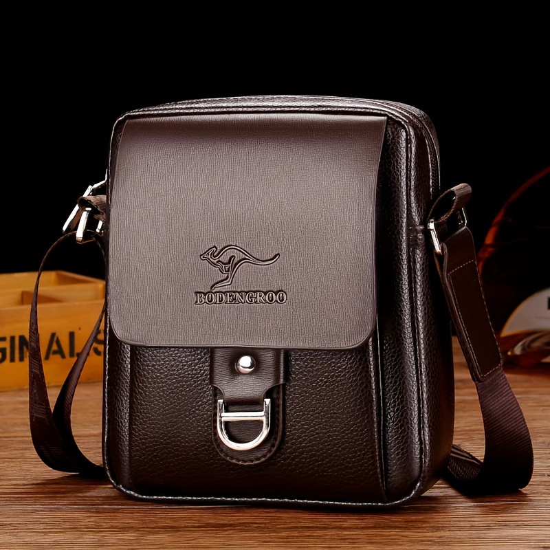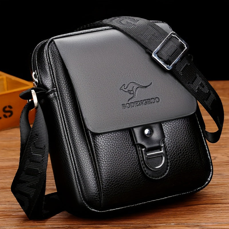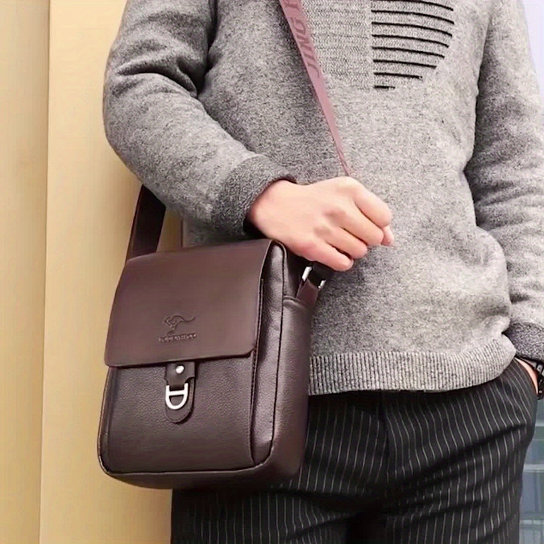 Men's Microfiber Leather Shoulder Bag Basic Style with Buckle for Daily Commute - Adjustable Strap No-Print Messenger Bag - Business Casual Crossbody Bag
