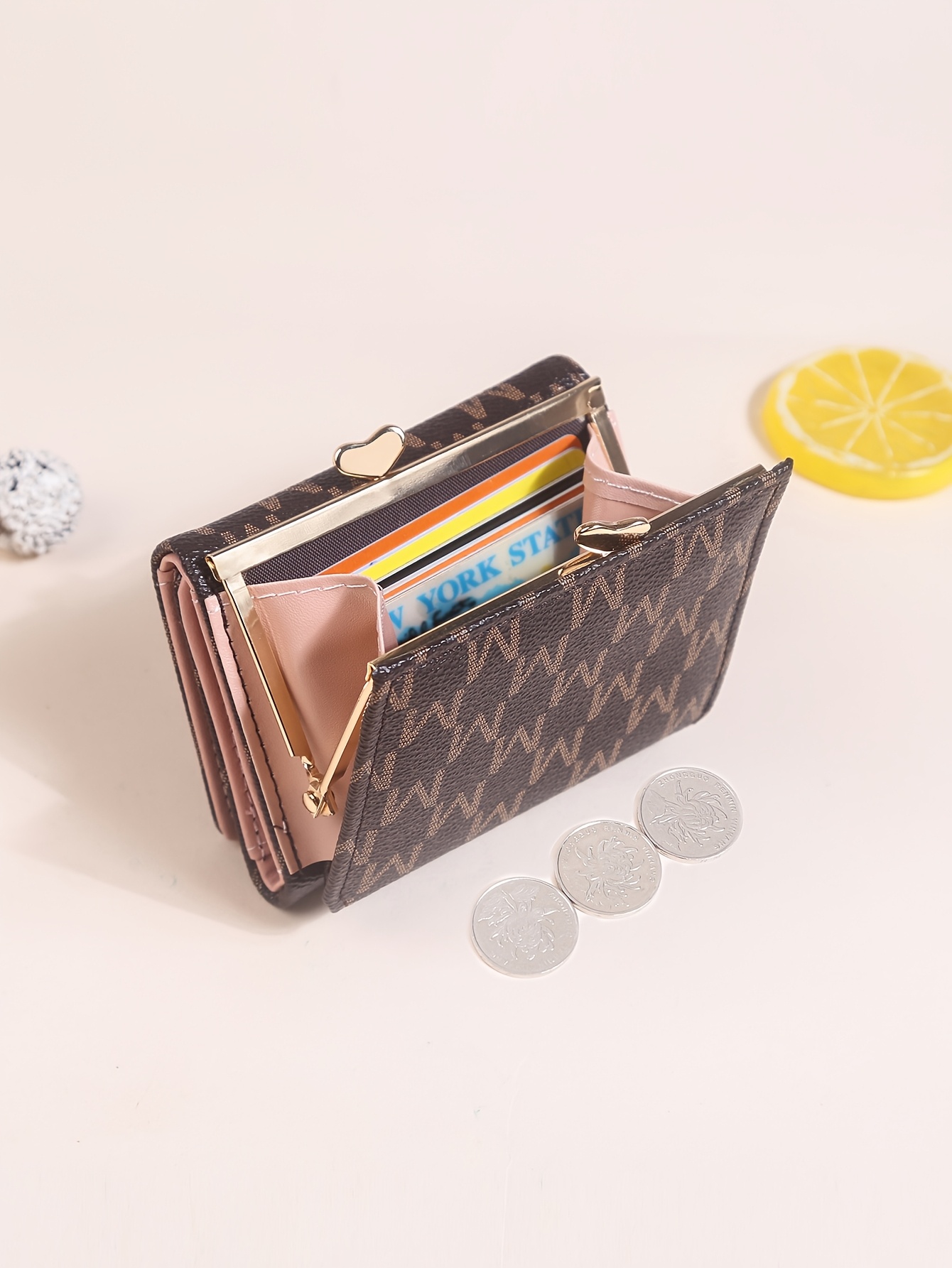 "Mother's Day Gift for Mom - Designer Monogram Tri-Fold Wallet w/ 12 Card Slots & Heart-Shaped Clasp | Vegan Faux Leather Compact Credit Card Holder, Stylish Women's Wallet (Perfect Gift for Her - Birthday, Anniversary & Moth
