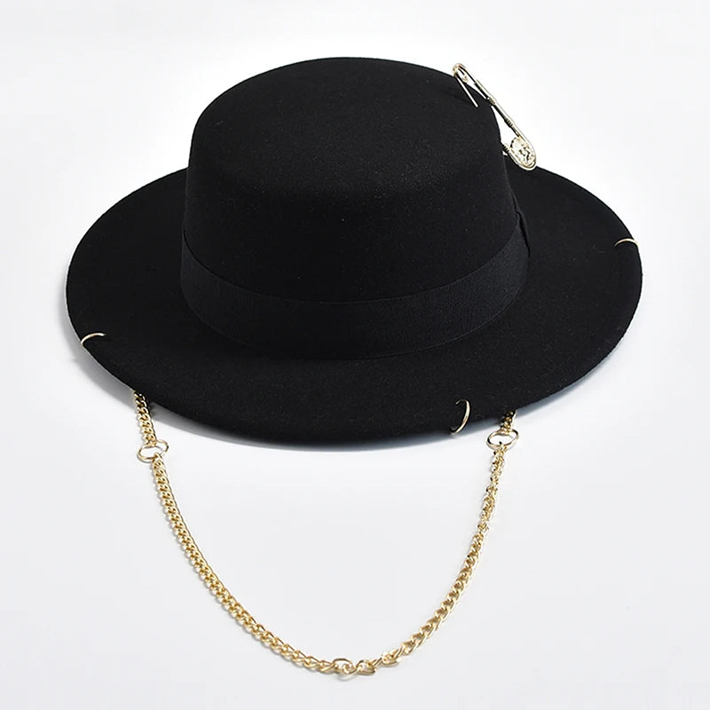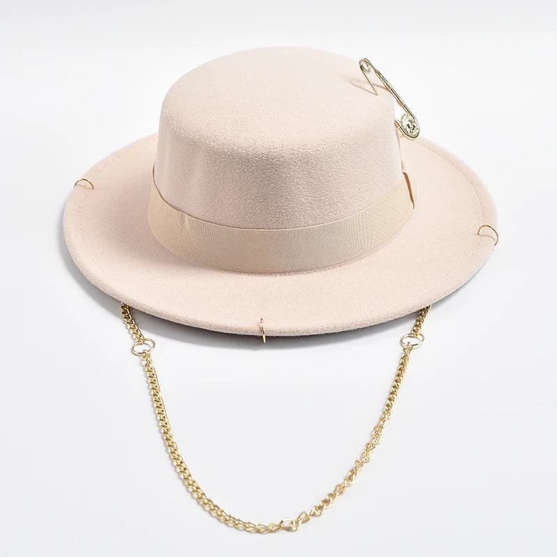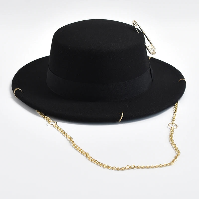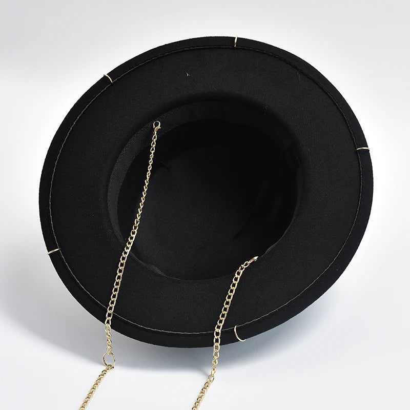 New Fashion Desige Fedora Hat For Women Men Metal Chain Decor Jazz Hat Party Church Caps