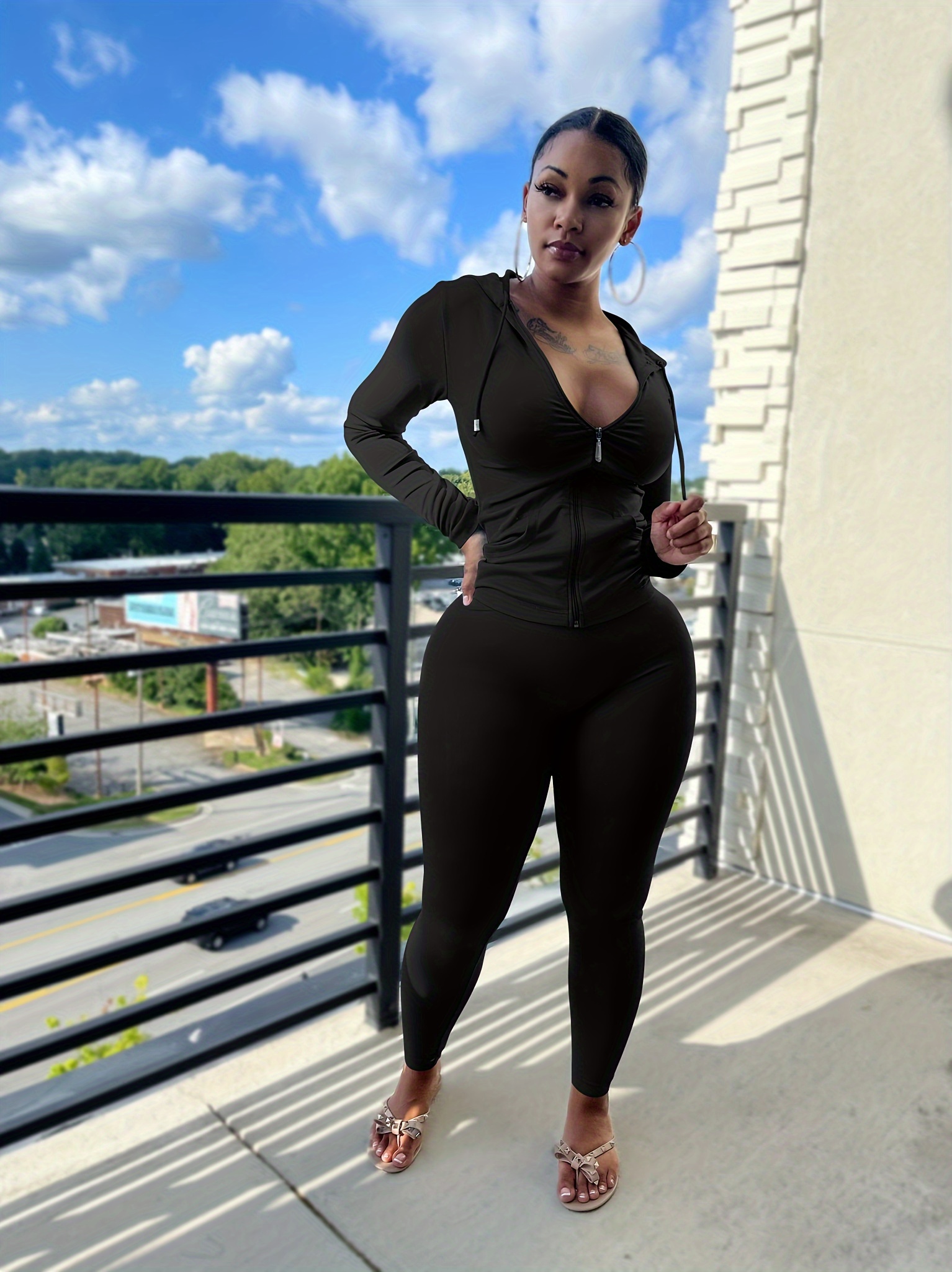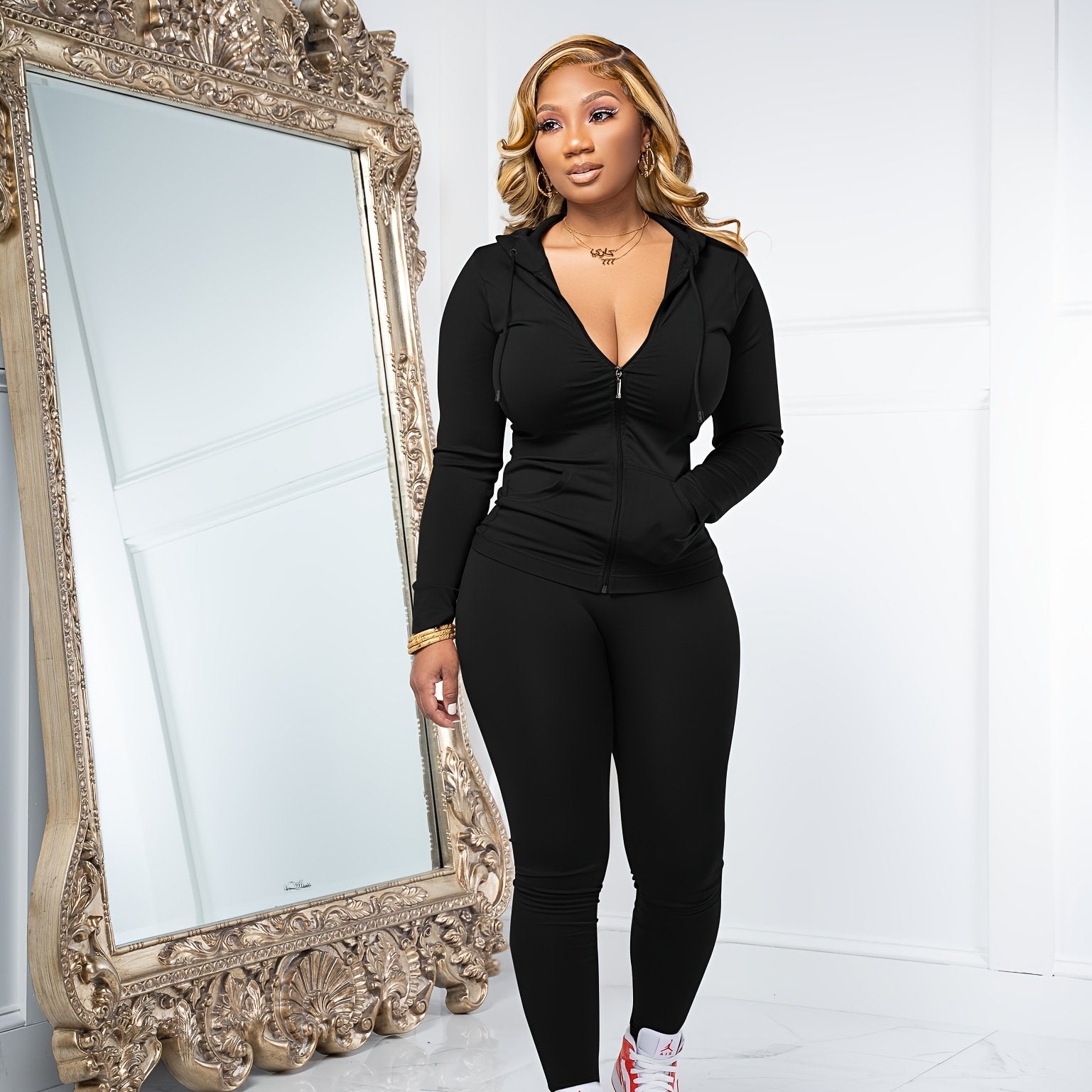 Women Two Piece Outfits Workout Sets Bodycon Tracksuit Long Sleeve Zip Up Hoodie Jacket Jogger Matching Sweat Pants Set